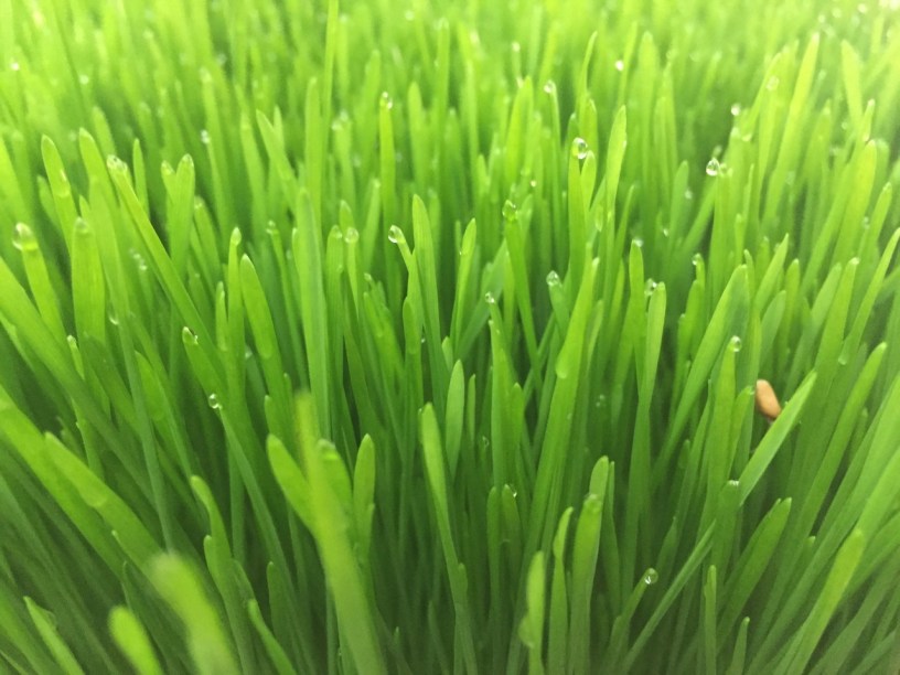 The fresh grass is the most healing and while the wound is new and raw, it is the best remedy. Later, once the wound is solidly knitted, (5-7 days?) you can use the wheatgrass spray (especially if the wound is sensitive) or just use the wheatgrass balm. Of course, if you need stitches, get that done first and then use the grass poultice to help speed up the healing of the wound. Only don’t tell the docs you’re doing it.