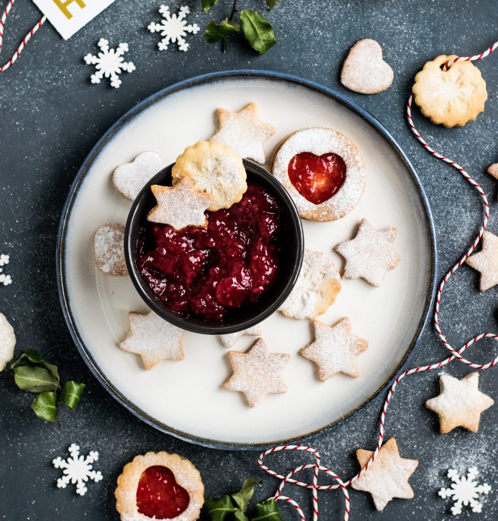 These classic holiday cookies have been a seasonal favorite of ours since childhood! You can make them without any refined sugar by using coconut or date sugar, and making your own chia-seed jam. They also happen to be gluten-free, and are great to make with kids; even the littlest ones will enjoy smushing the dough balls with their thumbs! We like to use two different colored jams–– raspberry and apricot, for instance–– so they are even more decorative on the plate. But they won’t stay on the plate for very long!