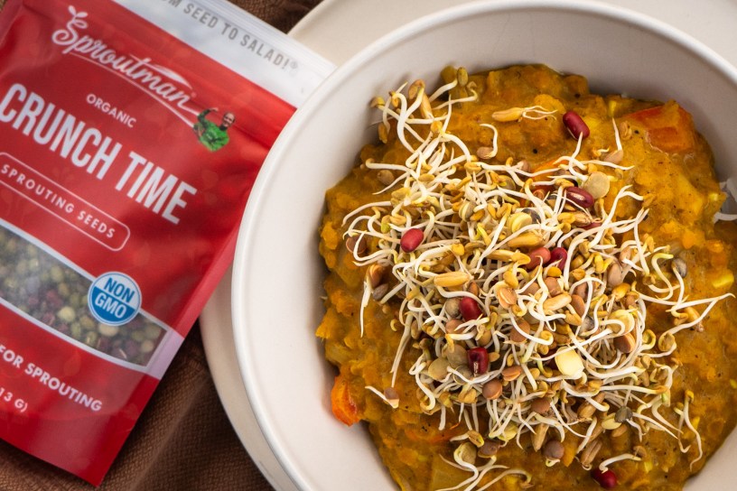 - Adjust seasoning with salt and pepper as needed. Serve over warm rice and top with fresh Crunch Time sprouts as desired!